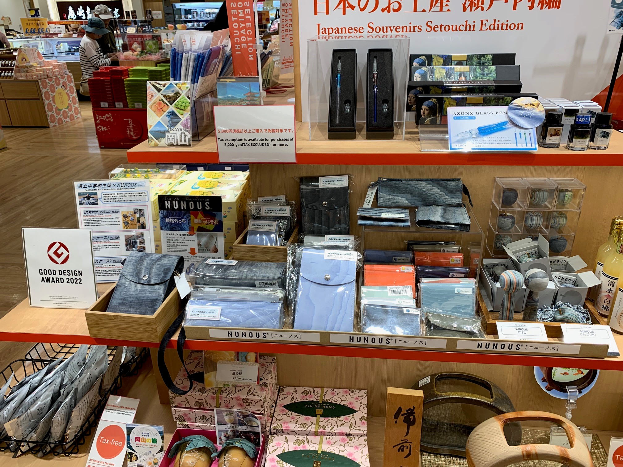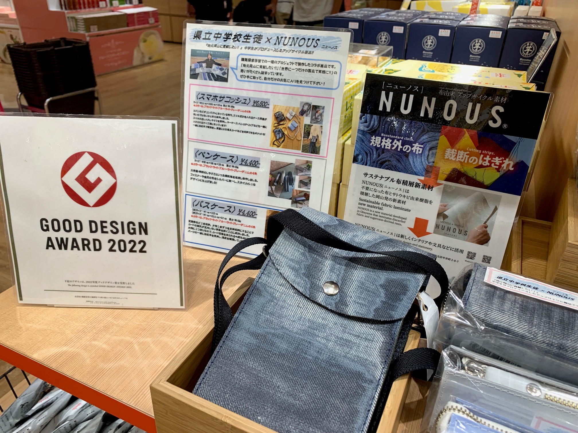 [写真]JR岡山駅のお土産コーナーにも並ぶNUNOUS製品