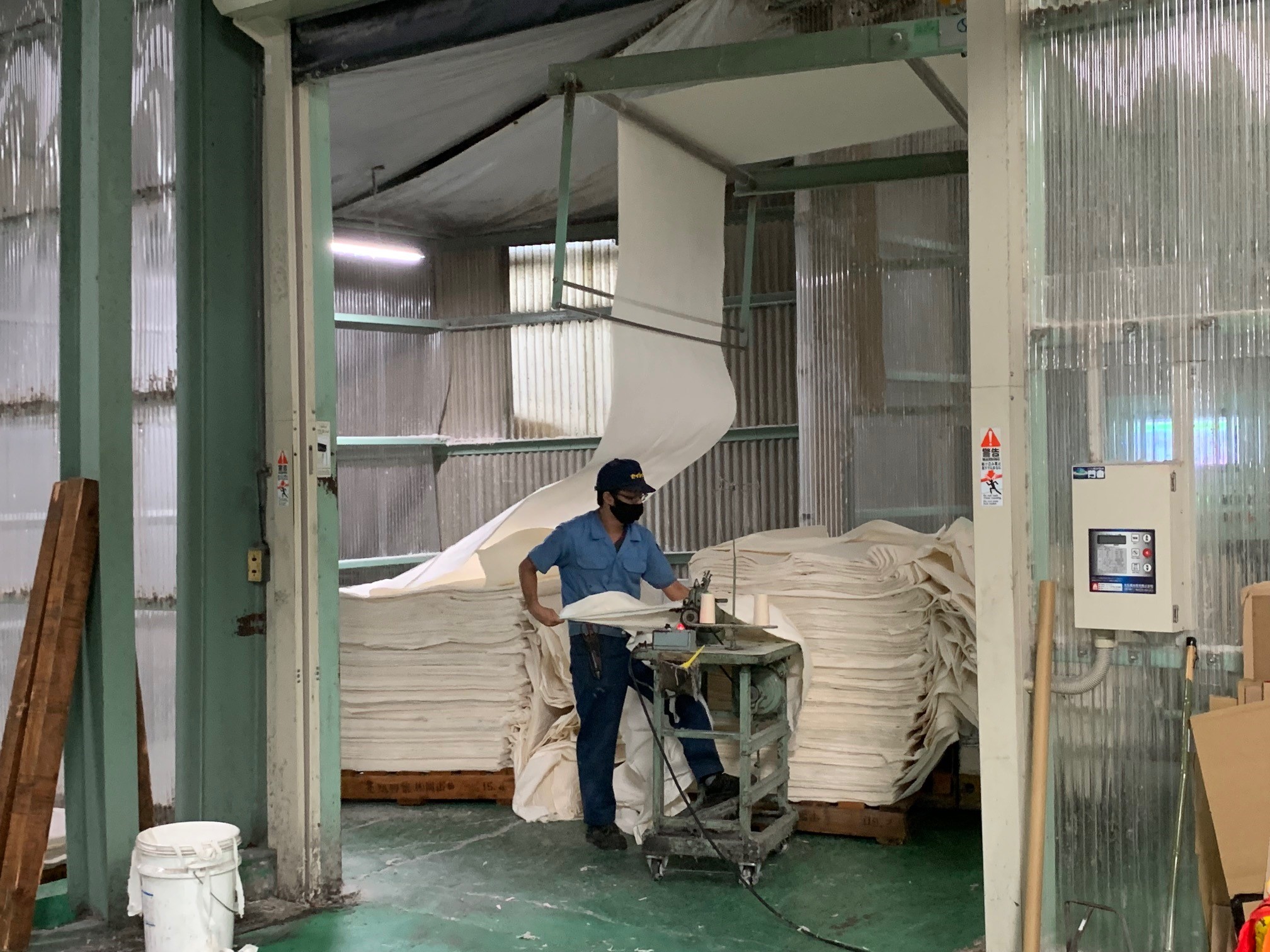 [写真]布の「規格外品」の多くは粉砕や焼却などの処理をする