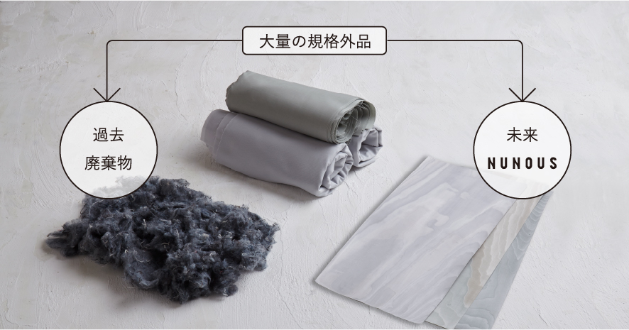 ・日本の繊維製品の品質基準は非常に高く高品質ですが、その反面、基準に満たない「規格外品」が存在します。布の「規格外品」はリサイクルが難しく、多くは粉砕や焼却などの処理が行われてきました。