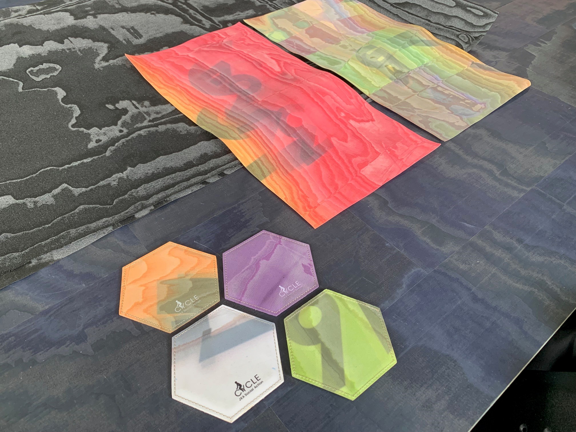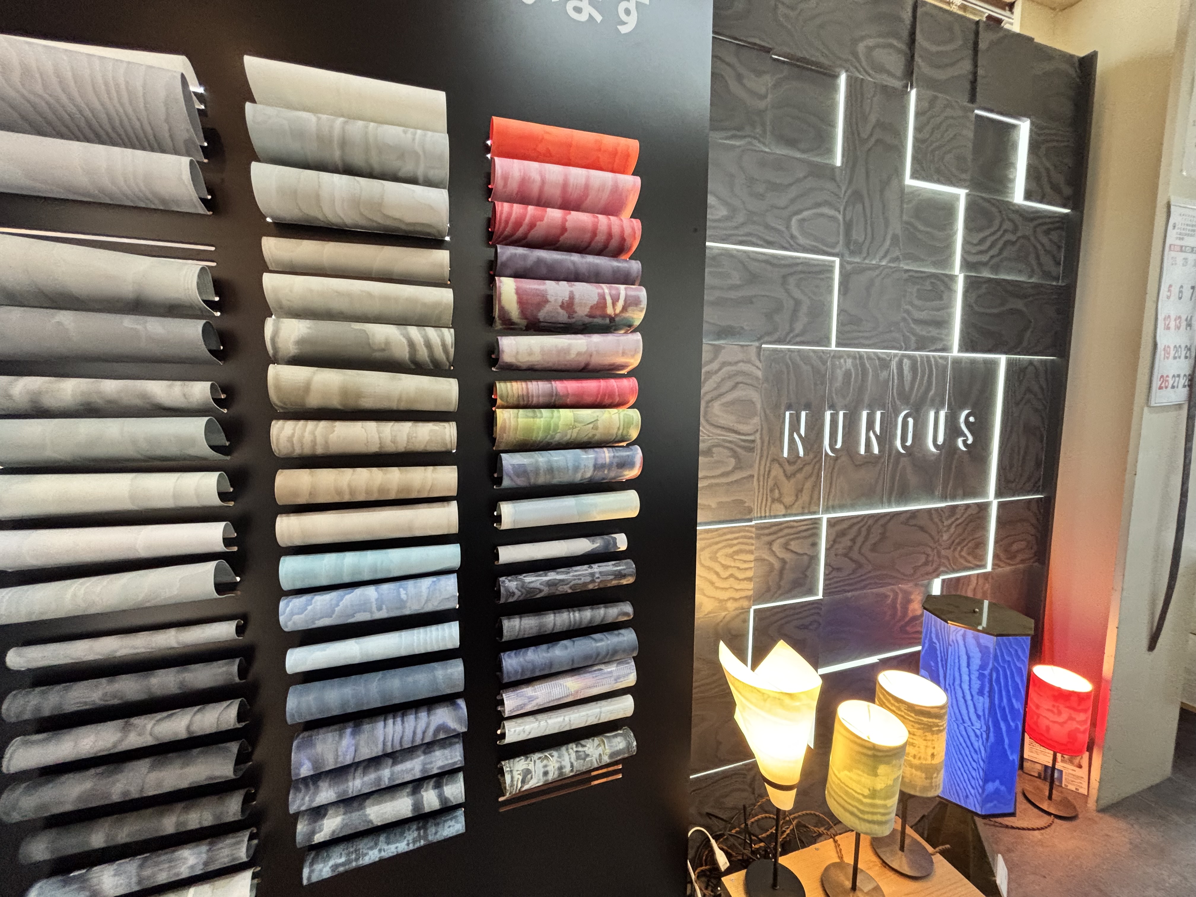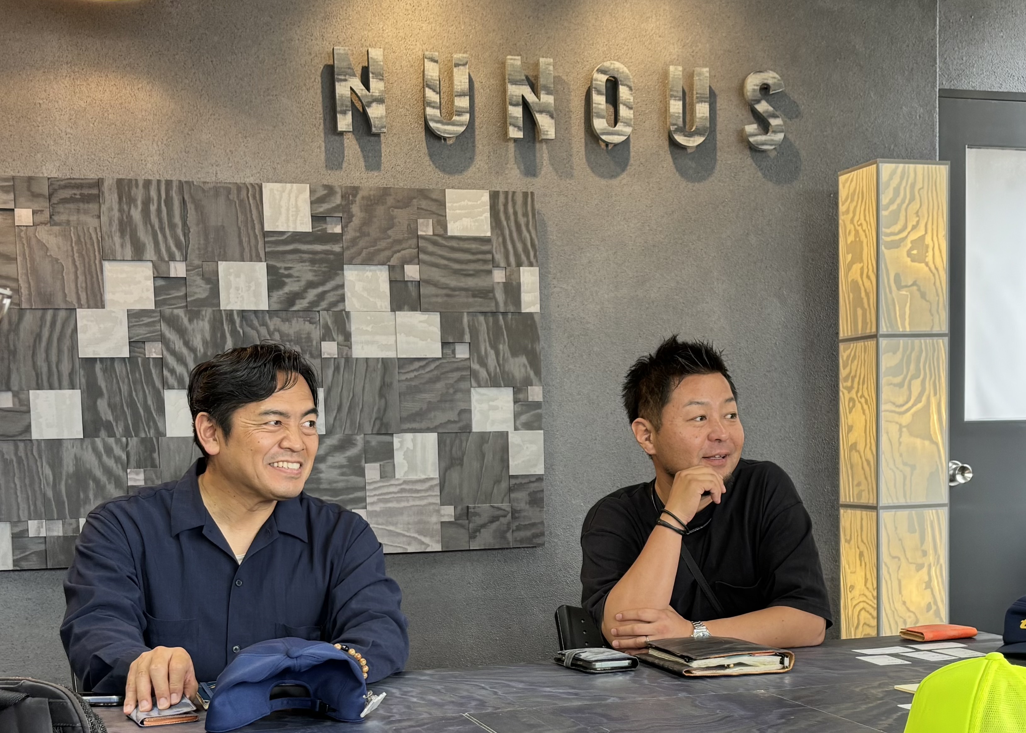 ・さらに、ここ最近は、例えばオフィス・工場で廃棄予定の制服や作業服、旅館やホテルで不要になった館内着・浴衣など、お客様由来の不要になった「布」をアップサイクルして、壁紙やサイン、ノベルティなどに生まれ変えさせる、言わば”クライアントオリジナル“NUNOUSも数多く生まれています。