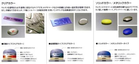 ウレタンを透明または半透明に着色し、裏面にロゴマークやベタ印刷施すことがで