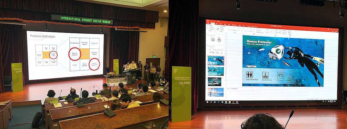 屏東大学の講堂で最終発表が行われ、JIDA、CIDA(台湾インダストリアルデザイナー協会)、KAID(韓国インダストリアルデザイナー協会)の理事長を始めとする理事、関係者が集まった。屏東大学学長の挨拶から始まり、全8チームそれぞれ方向性の異なるユニークな発表が行われた。島、海の課題解決を図るもの、客家文化を背景としたお弁当の提案、お土産の提案など、見学やリサーチで得られた体験から具体的な提案まで、限られた時間の中で発表資料までまとめる集中力に驚かされた。その後休憩をはさみ各賞が発表された。受賞をよろこぶ各チームの歓声の中、1週間に渡り行われた国際学生ワークショップは幕を閉じた。