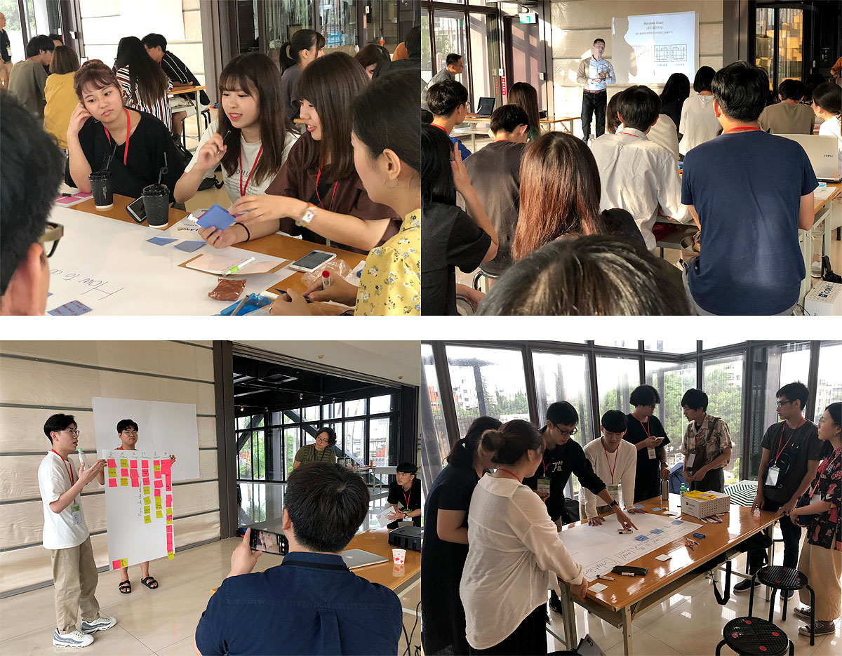 このプロジェクトは学生間ワークショップのほか、デザイン関連の視察、メンターによるレクチャーおよびゼミナール、文化を理解する見学、訪問等により構成されている。ワークショップのスタートは各国混成グループ結成後の、台中文化を知る夜市の探検から。翌日からは2019テーマに沿って、琉球嶼、台中文化産業園、東隆宮、六推客家文化園などを訪問。ワークショップではCIDAメンターからのレクチャーも多数挟み、諸々の手法を活用して提案に進め、最終日には国立屏東大学講堂にてプレゼンテーションを行った。