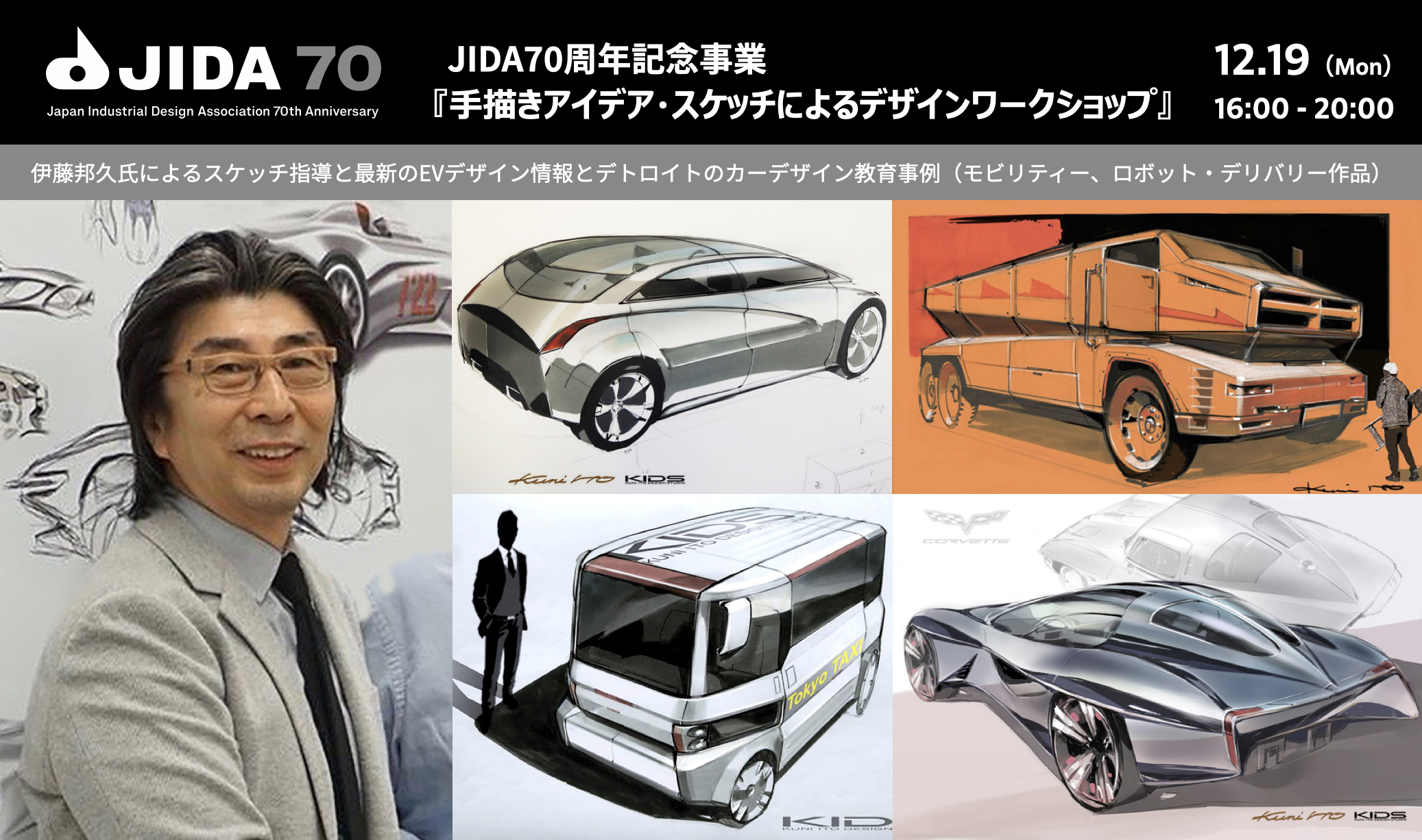日本インダストリアルデザイン協会(JIDA)は1952年の設立以来、工業デザインの職能団体として様々な活動を行って参りました。そして、今年2022年に創立70周年を迎えることとなりました。70周年を迎えるにあたり、JIDAでは記念事業として伊藤邦久氏を招き「手描きアイデア・スケッチによるデザインワークショップ」を開催いたします。