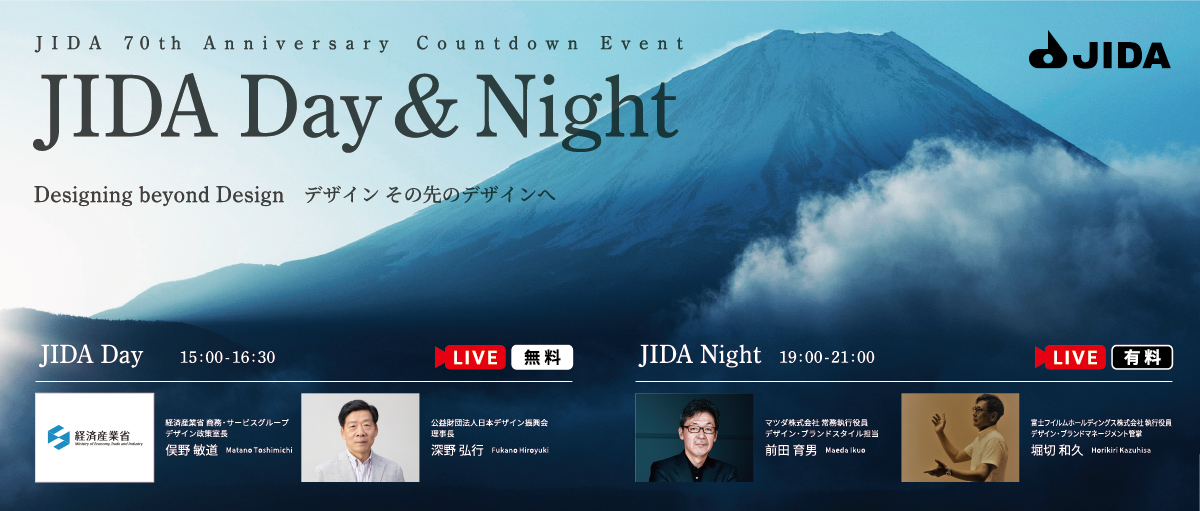 公益社団法人日本インダストリアルデザイン協会(JIDA)は、1952年の設立から2022年11月で創立70周年を迎えます。日本で最も歴史のあるデザイン協会として日本の産業の発展とともに歩んできたJIDAは、新年にふさわしいカウントダウンイベントを開催します。JIDA新ビジョン『Designing beyond Design』の実現に向け、多彩なゲストを招いて日本のデザインとその未来像を語る3つのプログラムを、株式会社Too 虎ノ門スタジオからLive配信でお届けします。