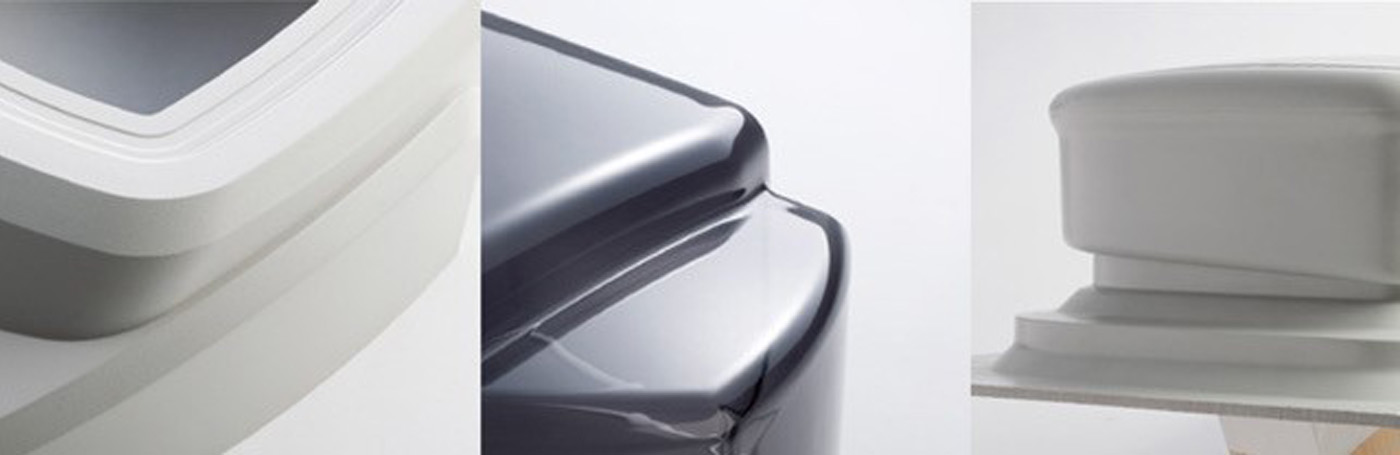 射出成形同等の形状再現性を持つ圧空・真空成形は、デザイン性の優れたカバーが少量生産で対応できるため、主に医療機器のほか、分析装置、産業用機械、ロボット等の外装カバーなどに使用されています。